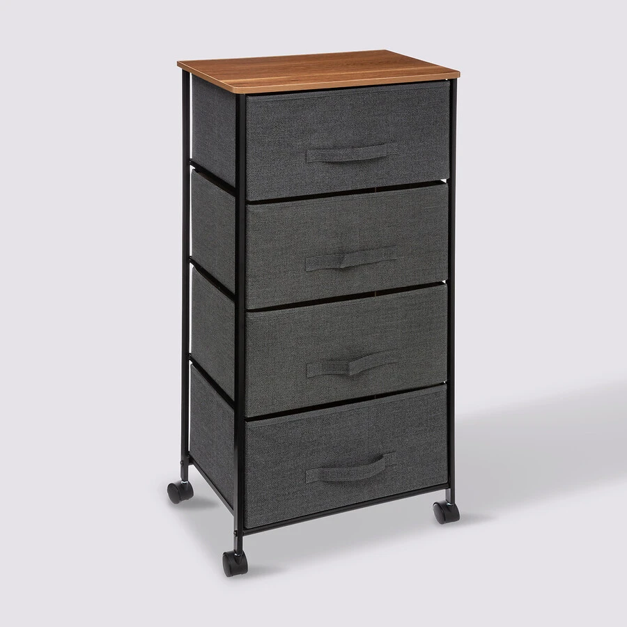 Rangement Roulettes 4 Tiroirs Tissu, Gris Anthracite